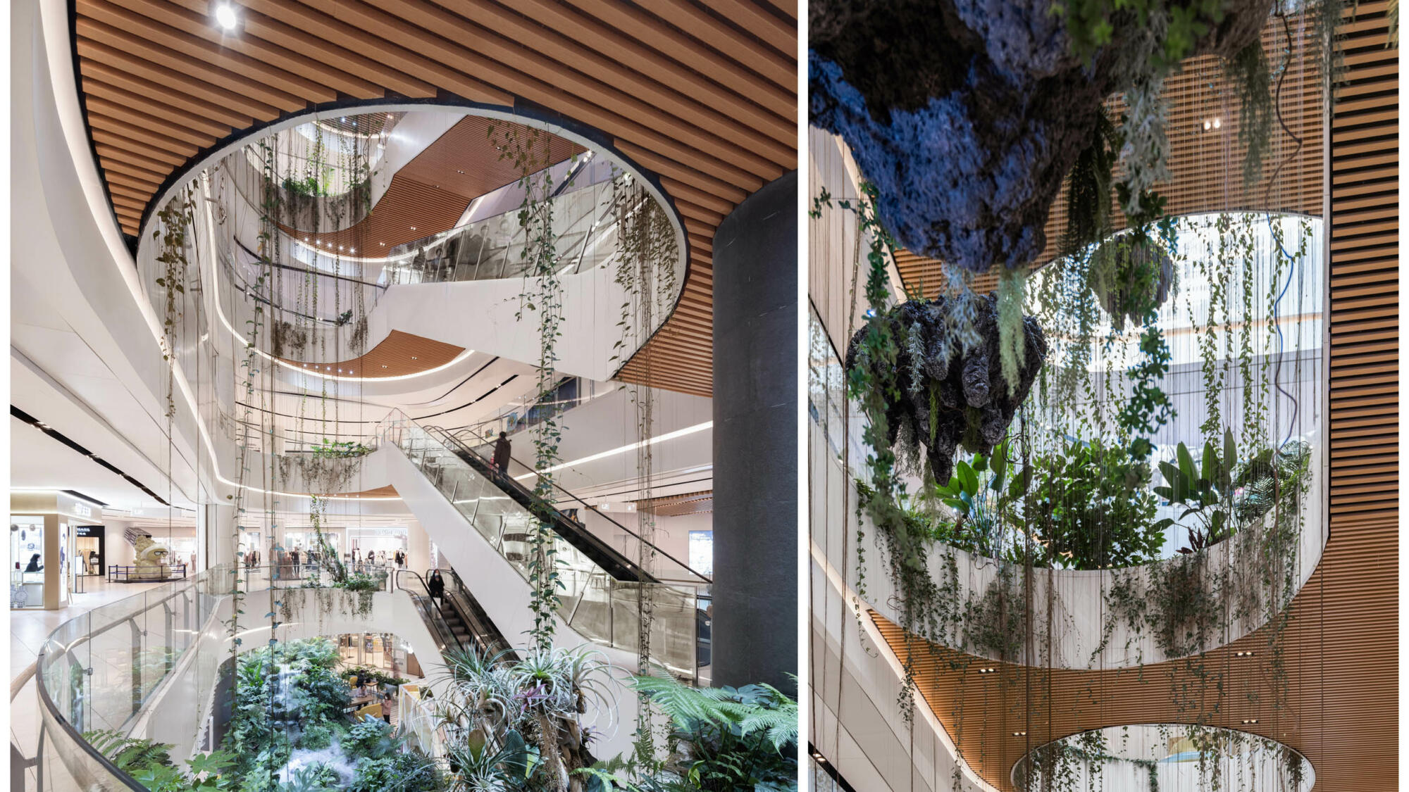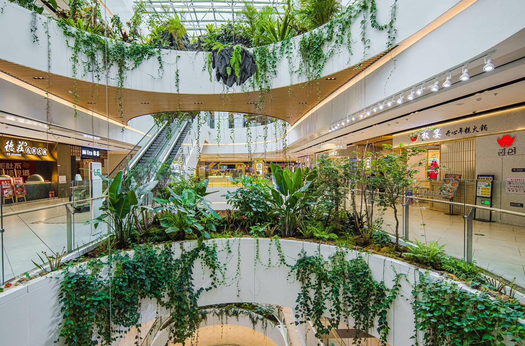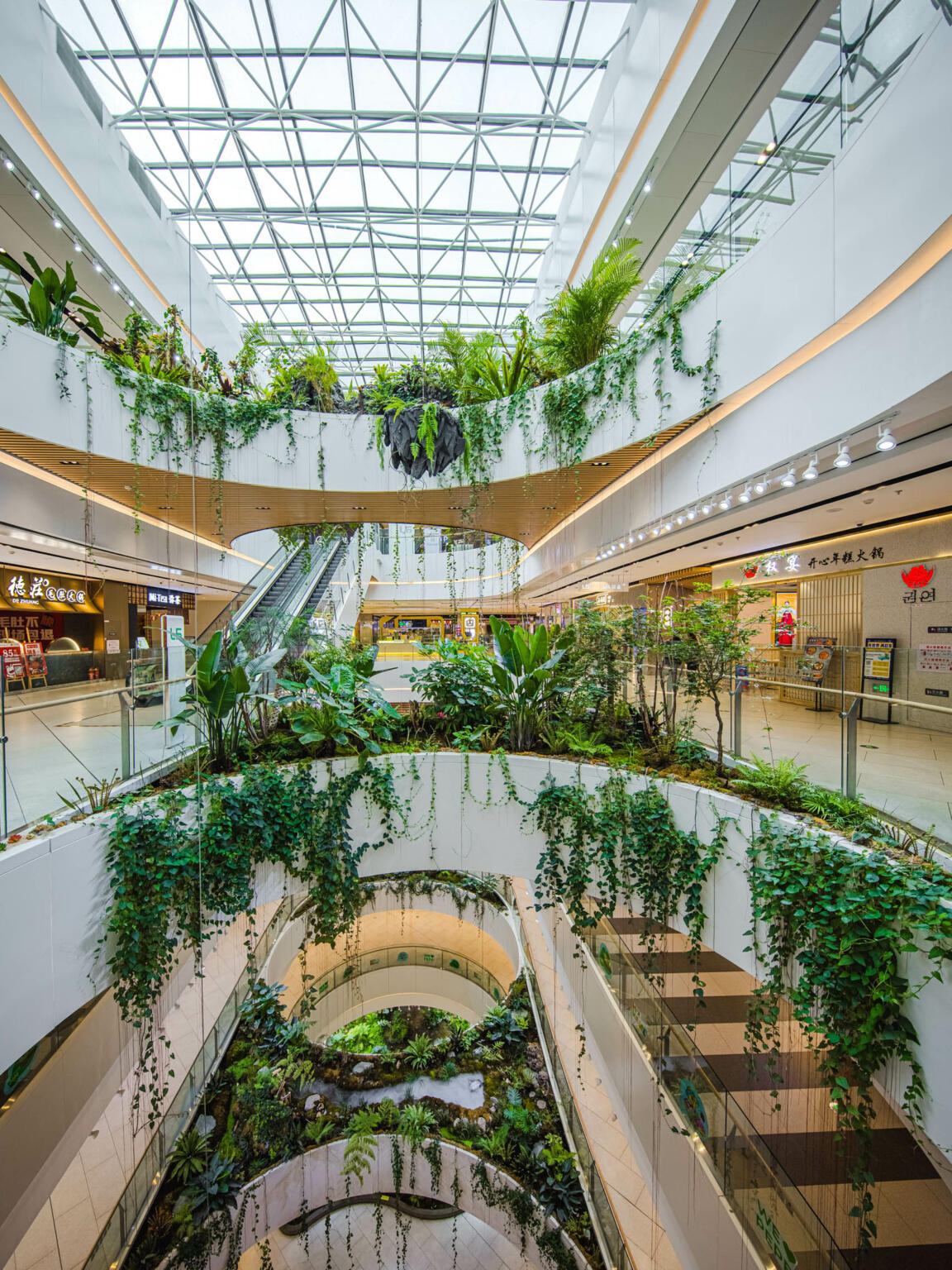 To counteract the ‘winter blues’ induced by a harsh climate of long, arid seasons devoid of green and daylight, CapitaMall Nuohemule emerges as the first garden mall in Inner Mongolia: lush multi-level interior landscaping spreads skywards through a series of atria and out into the horizontal circulation zones, to provide an enjoyably rare public green experience for the surrounding communities.