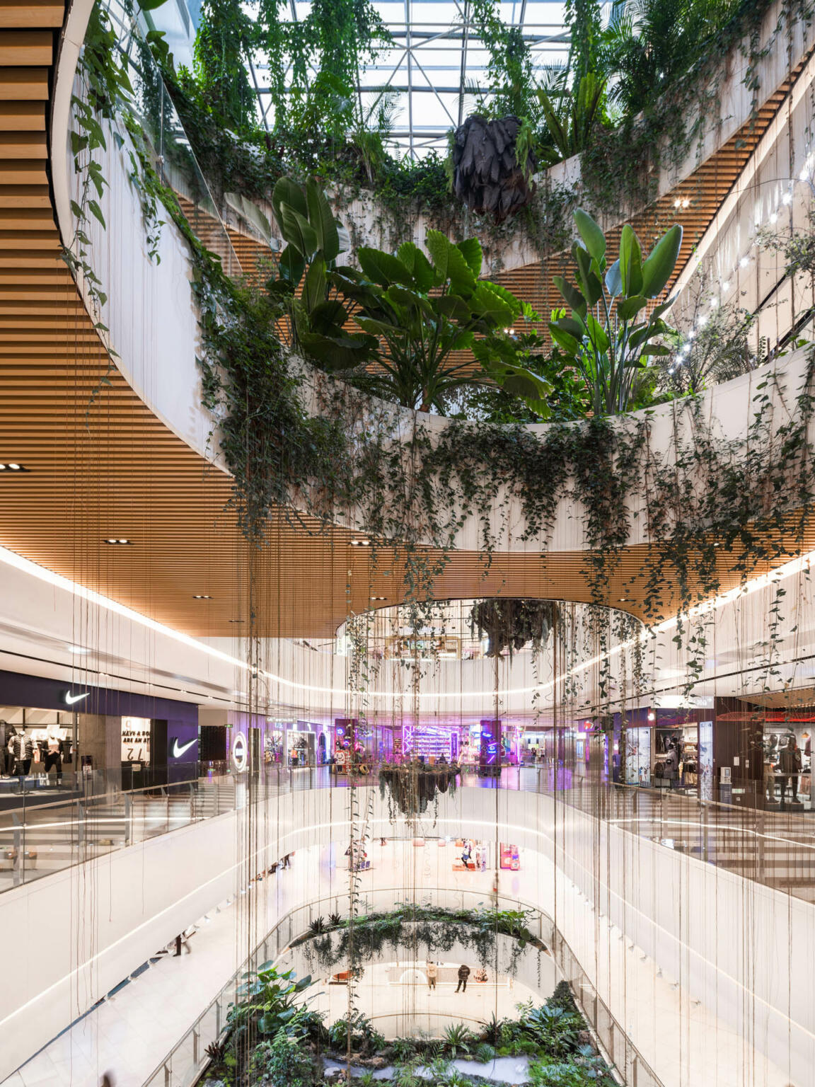 A spirited contemporary interpretation of the Hanging Gardens of Babylon, it incorporates horizontal gardening strategies across all retail floors to create social meeting and gathering spots with a fresh identity, interactive potential, and affective qualities.