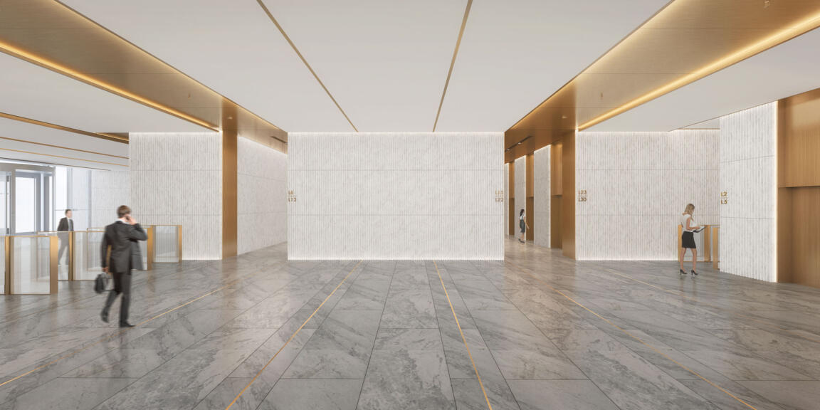 Public interiors continue the upscale contemporary language into the twin tower zones: two grand ground floor lobbies create a newly invigorated entrance experience to the prime office spaces, with the elegant, bright design theme extending into the public zones of all office floors.