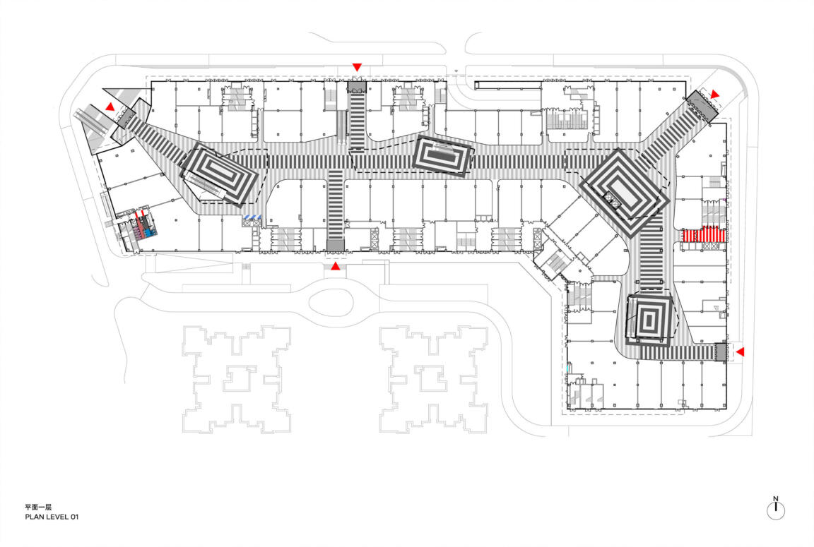 Inserted into a residential district north of the Chongqing city centre, LJCC is conceived as a neighbourhood mall catering to the emerging community: a meeting point for evenings upon returning home, and a destination for weekend outings.