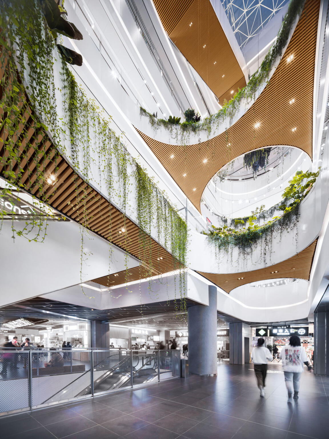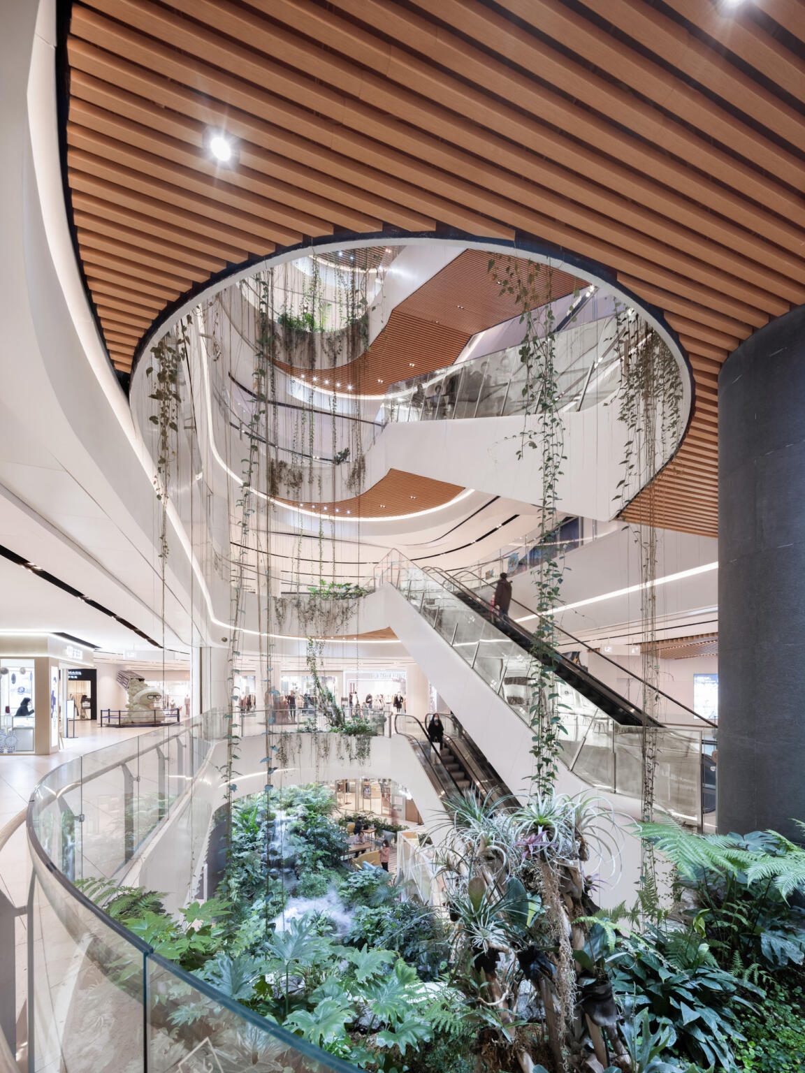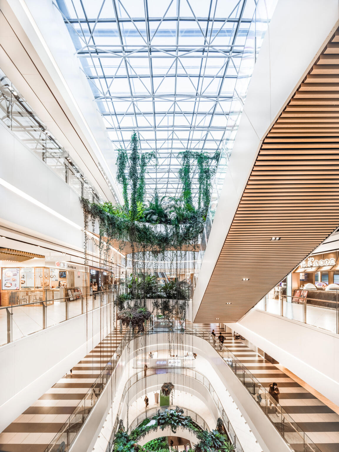 To counteract the ‘winter blues’ induced by a harsh climate of long, arid seasons devoid of green and daylight, CapitaMall Nuohemule emerges as the first garden mall in Inner Mongolia: Lush multi-level interior landscaping spreads skywards through a series of atria and out into the horizontal circulation zones, to provide an enjoyably rare public green experience for the surrounding communities.