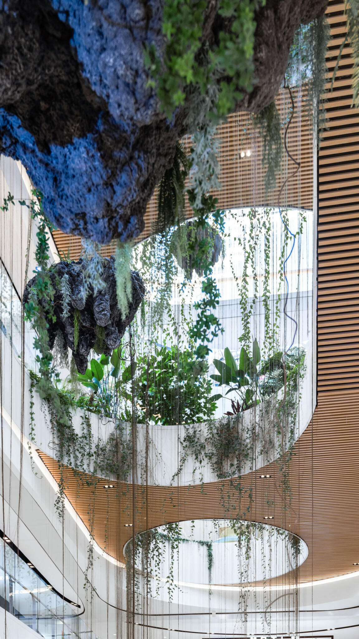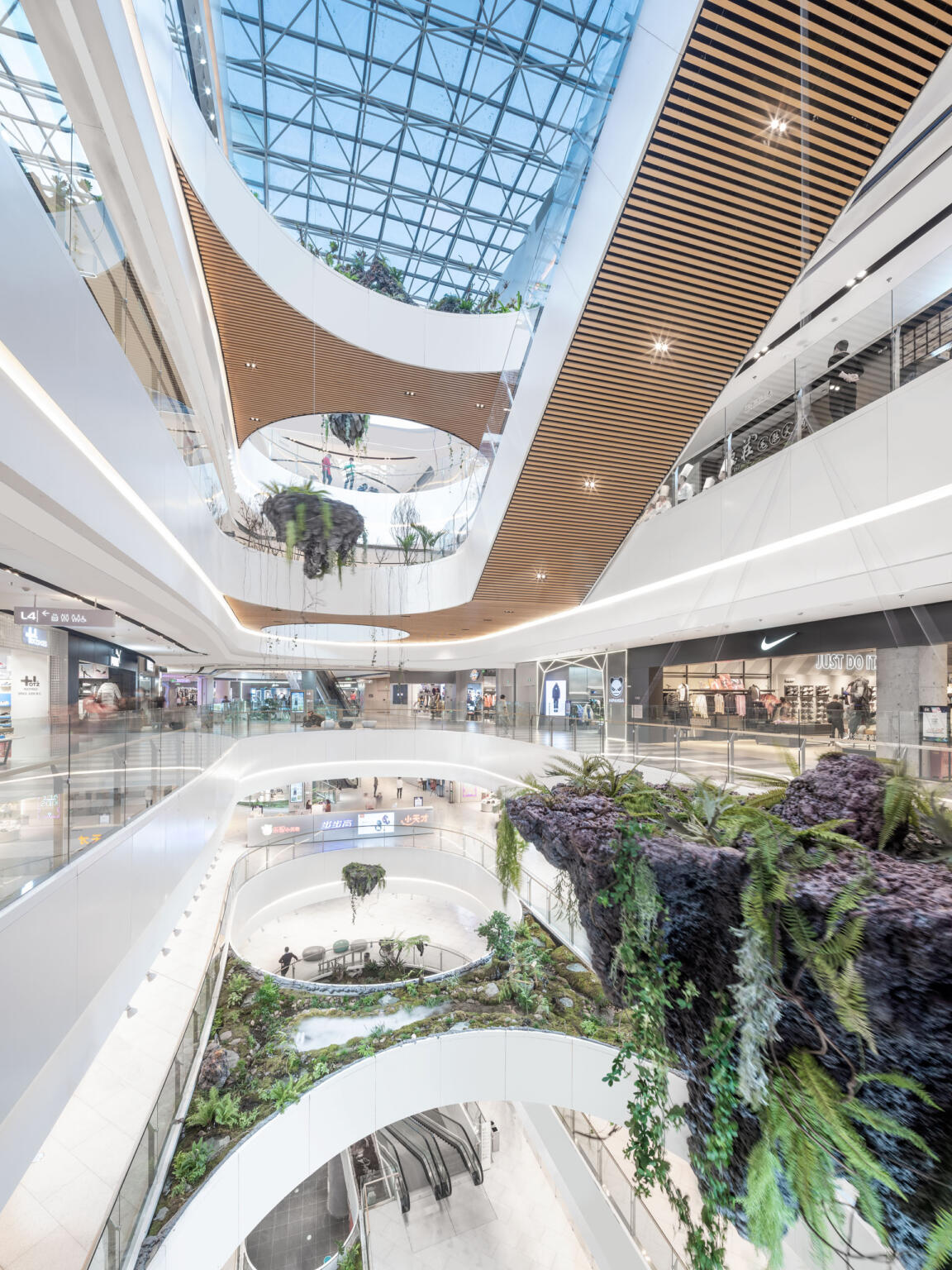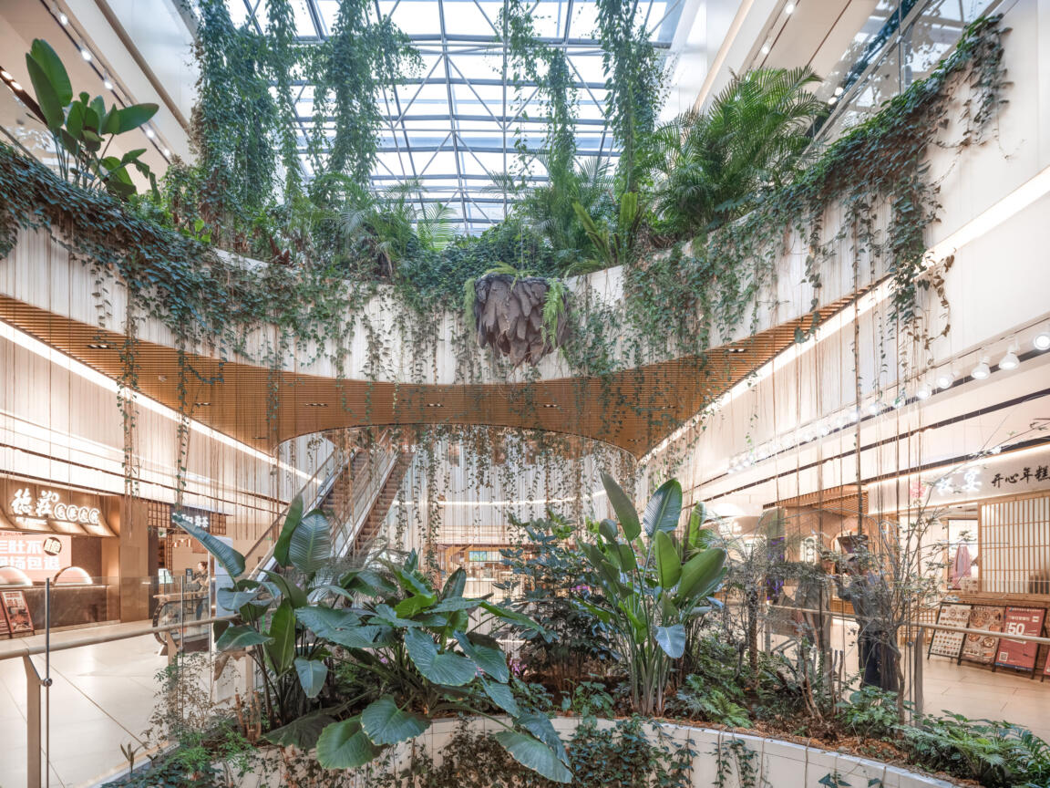 To counteract the ‘winter blues’ induced by a harsh climate of long, arid seasons devoid of green and daylight, CapitaMall Nuohemule emerges as the first garden mall in Inner Mongolia: Lush multi-level interior landscaping spreads skywards through a series of atria and out into the horizontal circulation zones, to provide an enjoyably rare public green experience for the surrounding communities.