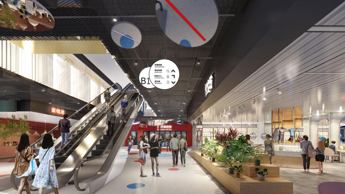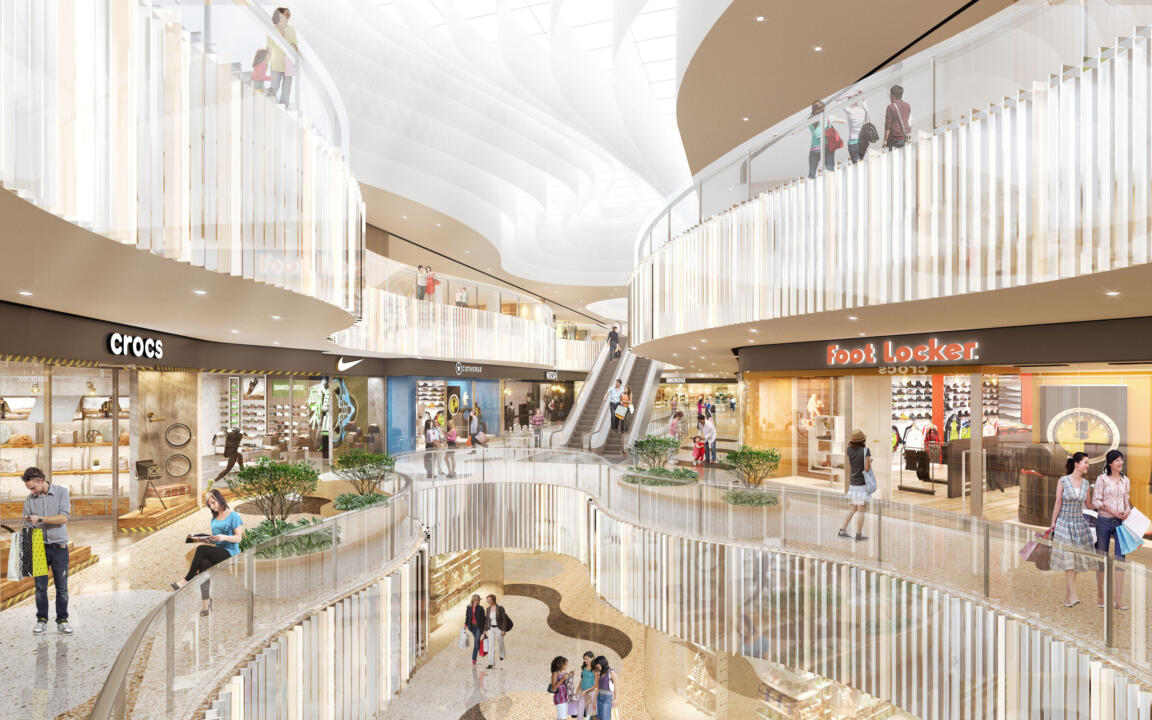 Undulating lines and lustrous materials evoke notions and emotions of local waterscapes in Jinan’s sophisticated Fosun IFC mall.