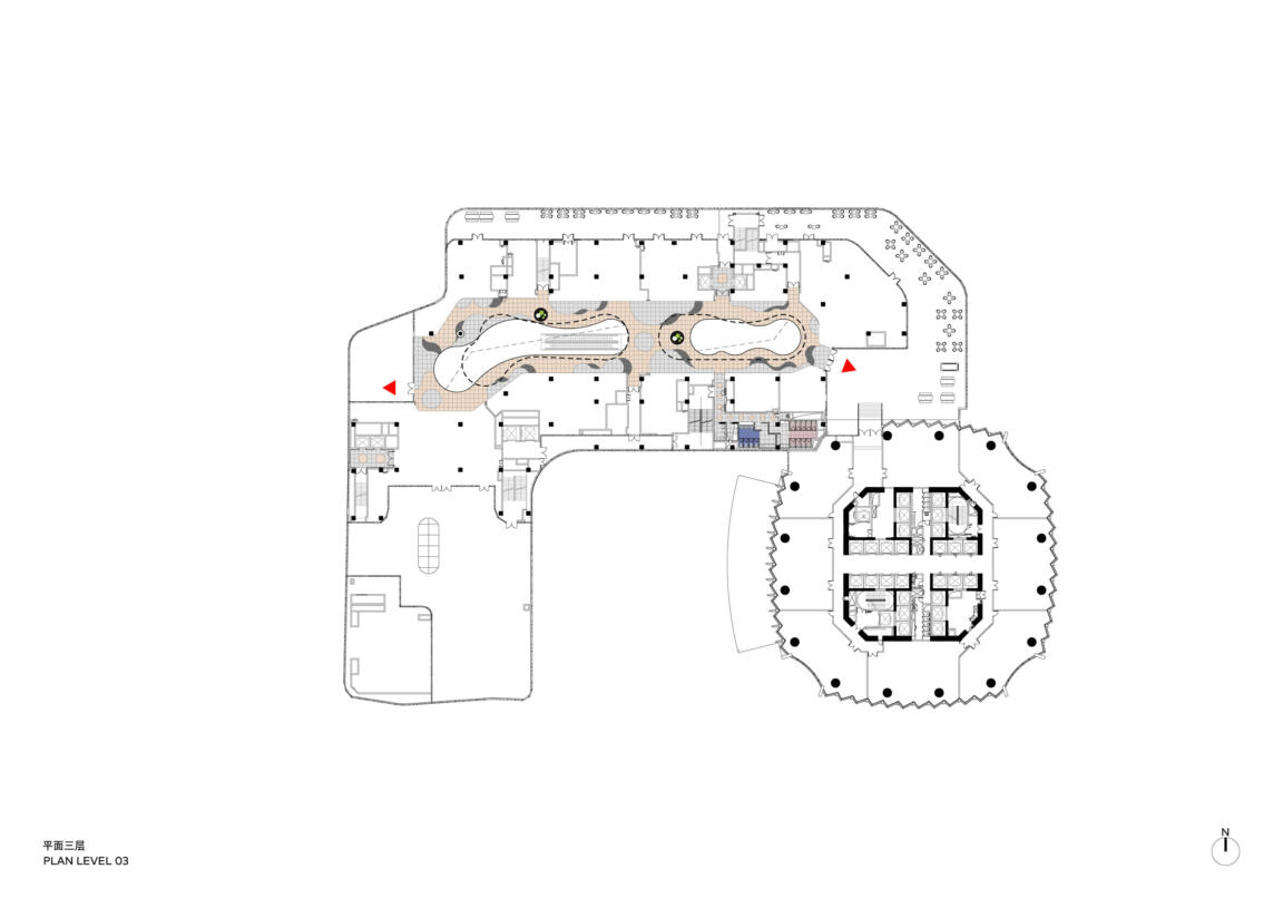 With its multitude of rivers and hot springs, Jinan is a city determined by the movement of water. The new IFC mall in the CBD core, conceptualised as a high quality, innovative boutique retail experience predominantly serving a business clientele, takes up the notion and emotion of flowing and rippling water, and translates it into shapes, materials and moods.