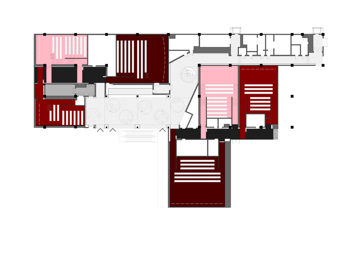 CLOU’s response is a playful one, celebrating the history of filmmaking as well as satisfying people’s anticipation of visiting movie theatres. The interiors draw reference from classic movie theatres in history and the stop motion frames of early cinematography.