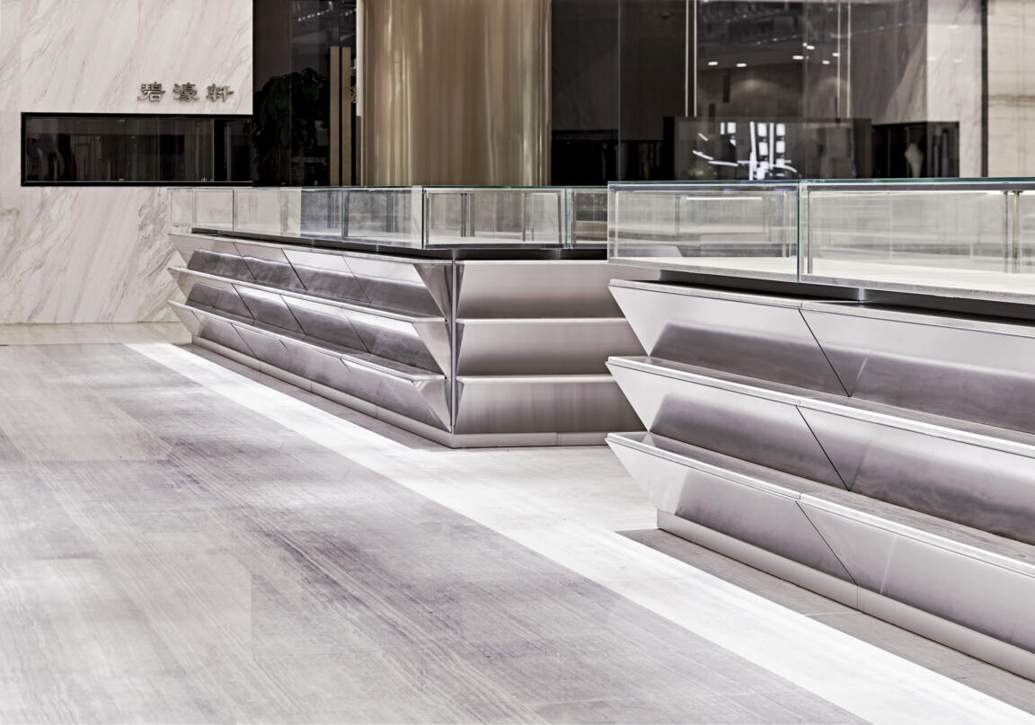 The original brief for Jewellery Box Chaowai was to design a high-end boutique, however, given the scale of the project, CLOU felt that a department store look and feel might be more appropriate.