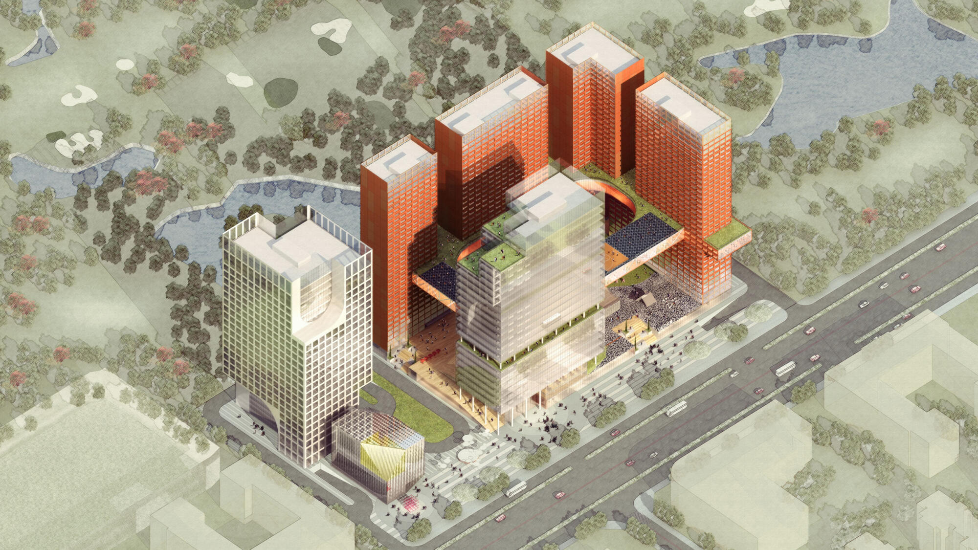 By weaving the different towers into a multi-dimensional residential and office hybrid, the design of Jianlingyuan showcases an innovative solution to accommodate people’s urban lifestyles.