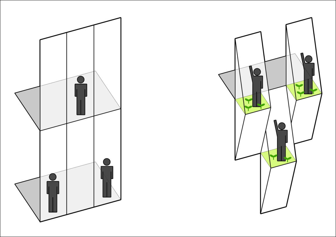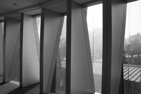 The inspiration for the pleated and woven facade was drawn from the former presence of the old textile market on site.