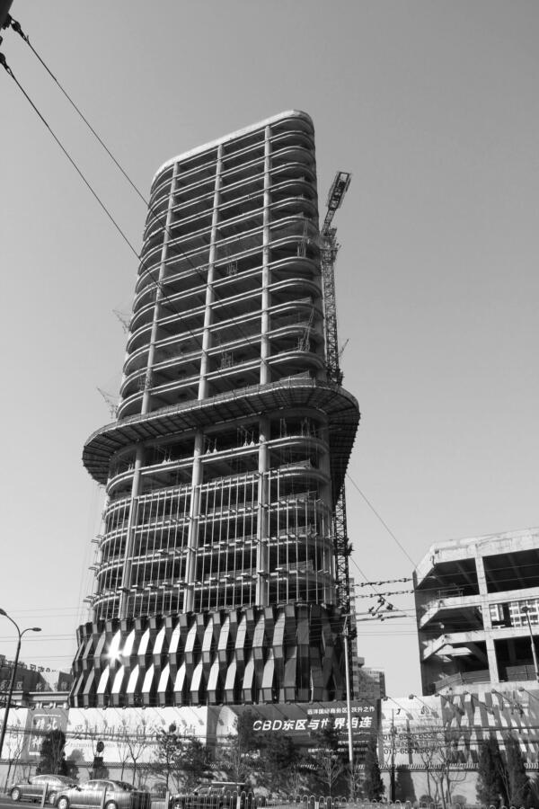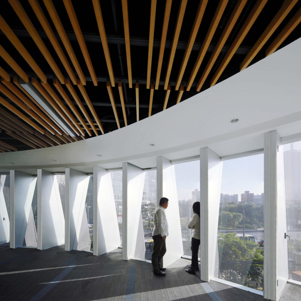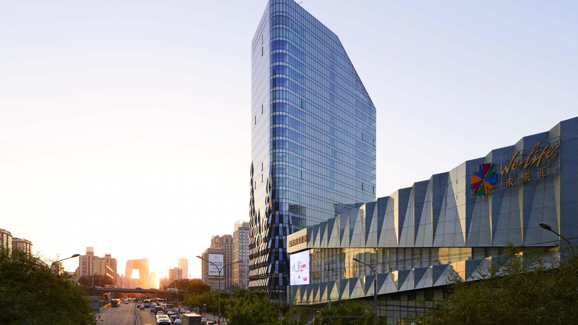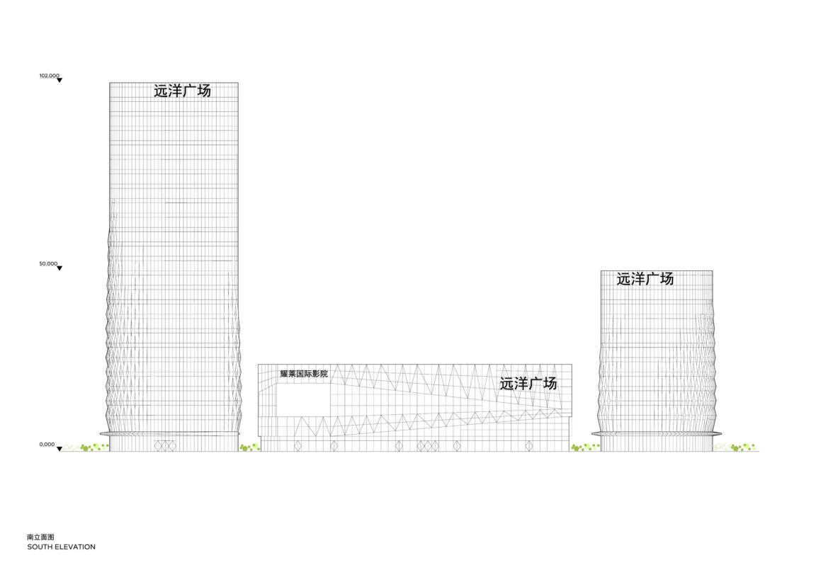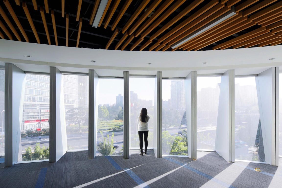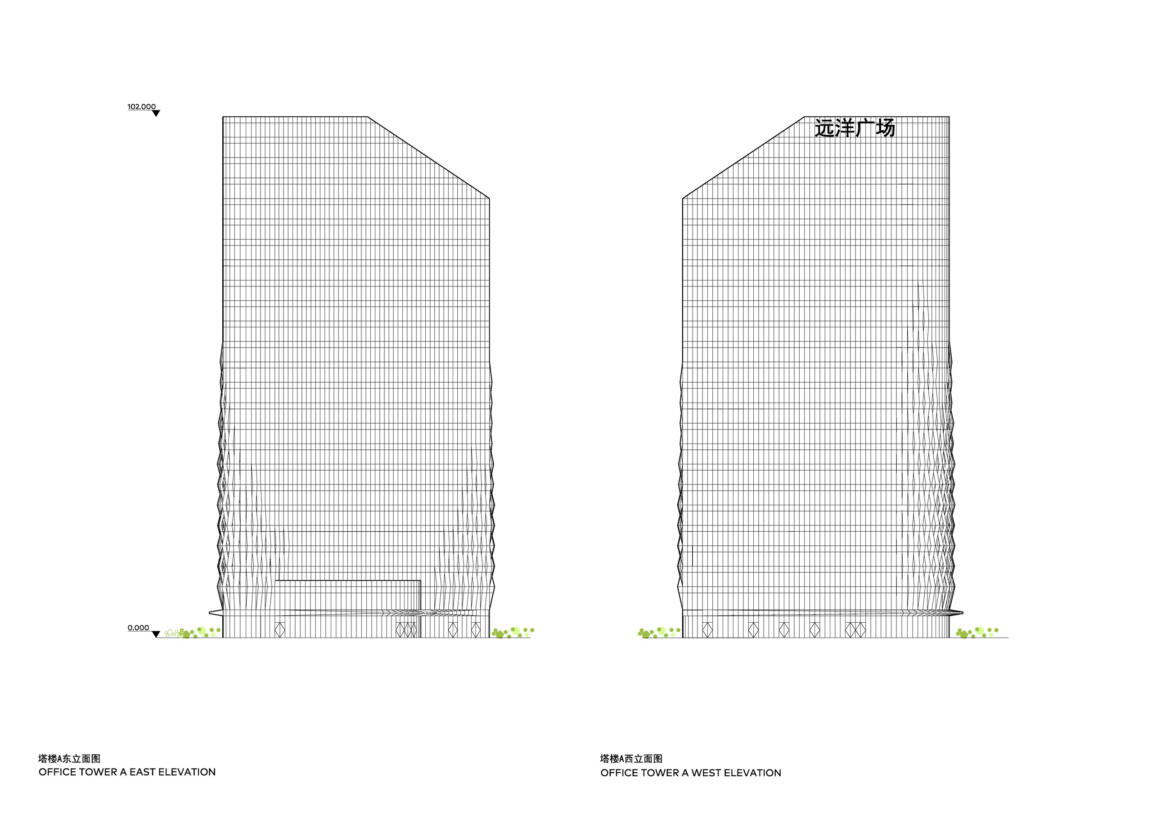 Jing Mian Xin Cheng on Beijing’s Fourth Ring Road mediates between the scale of the large urban development, busy road arteries and pedestrian foot traffic. CLOU engaged in designing a new landscape as well as two office towers linked by a retail podium in between.