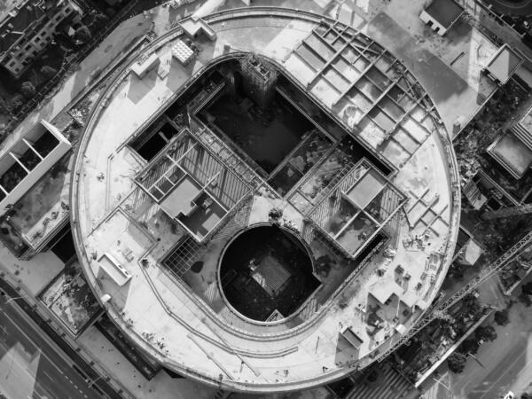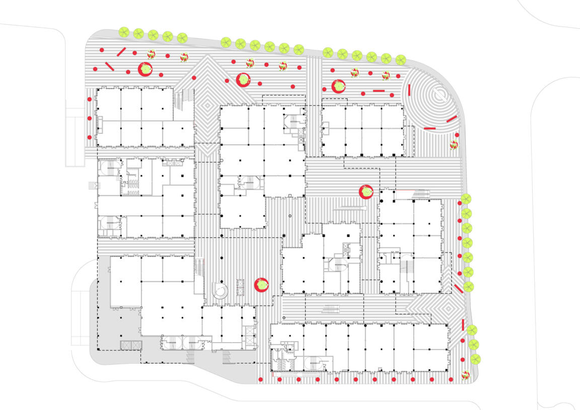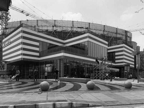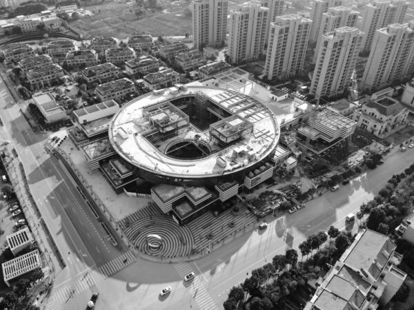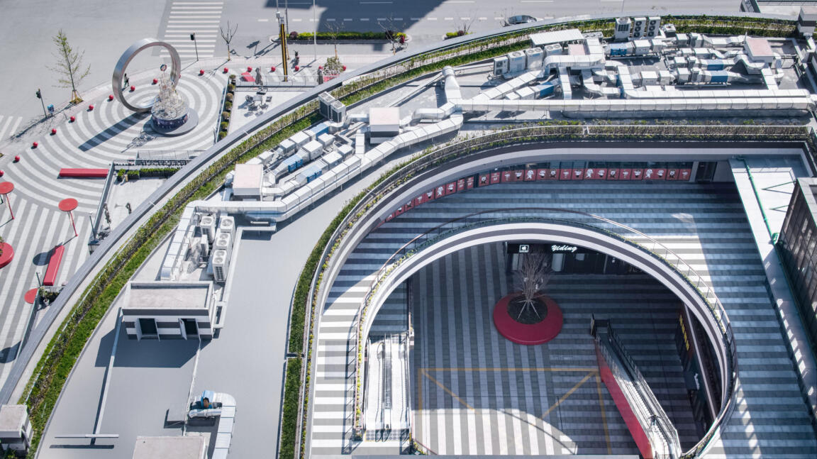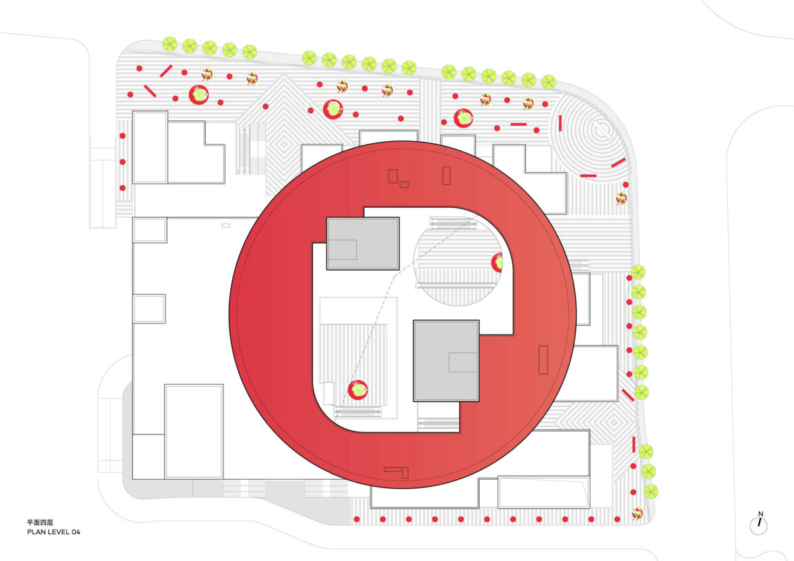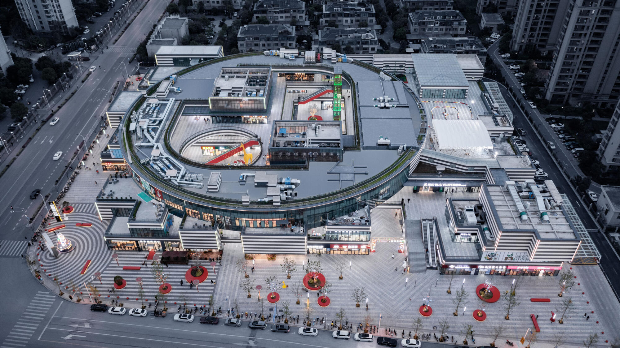 The stepped massing of the first two floors references the more intimate scale of the nearby ancient town. To achieve maximum commercial exposure, an iconic ring-like object sits on the roofs of the streetscape below.