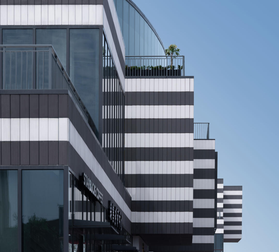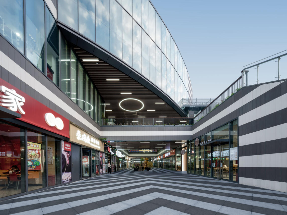 The 24,500 square-metre outdoor mall comprises of shopping, entertainment and dining facilities with social gathering spaces at its core. To ensure footfall to all retail areas, three public squares connect diagonally from the main corner entrance to a large plaza in the south-west.