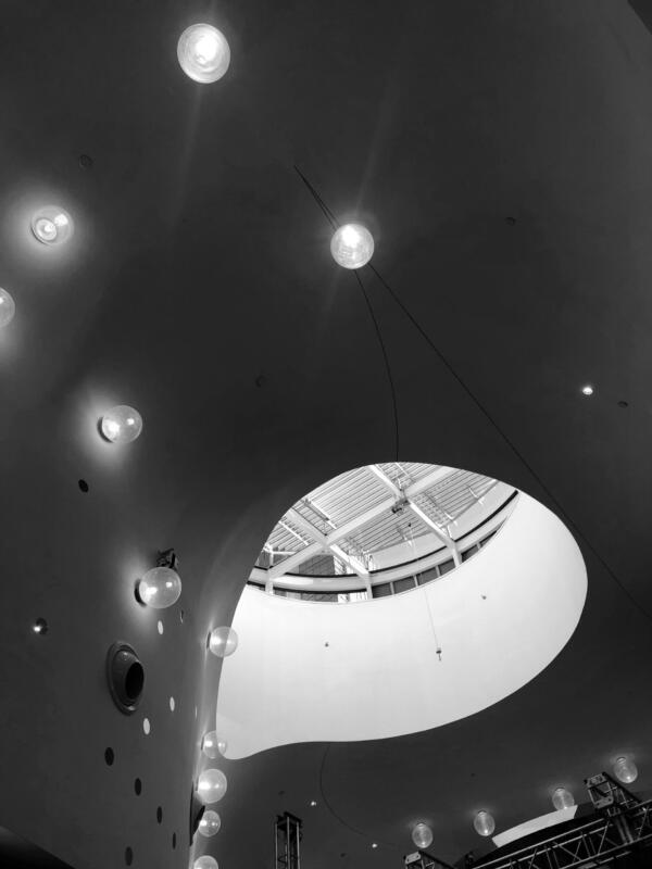 The vaulted double-height spaces provide a creative social atmosphere and a feeling of exploration.
