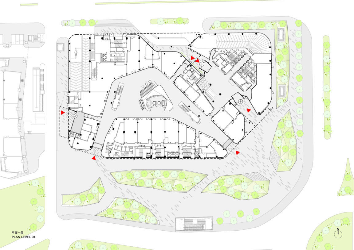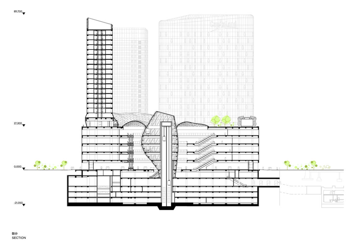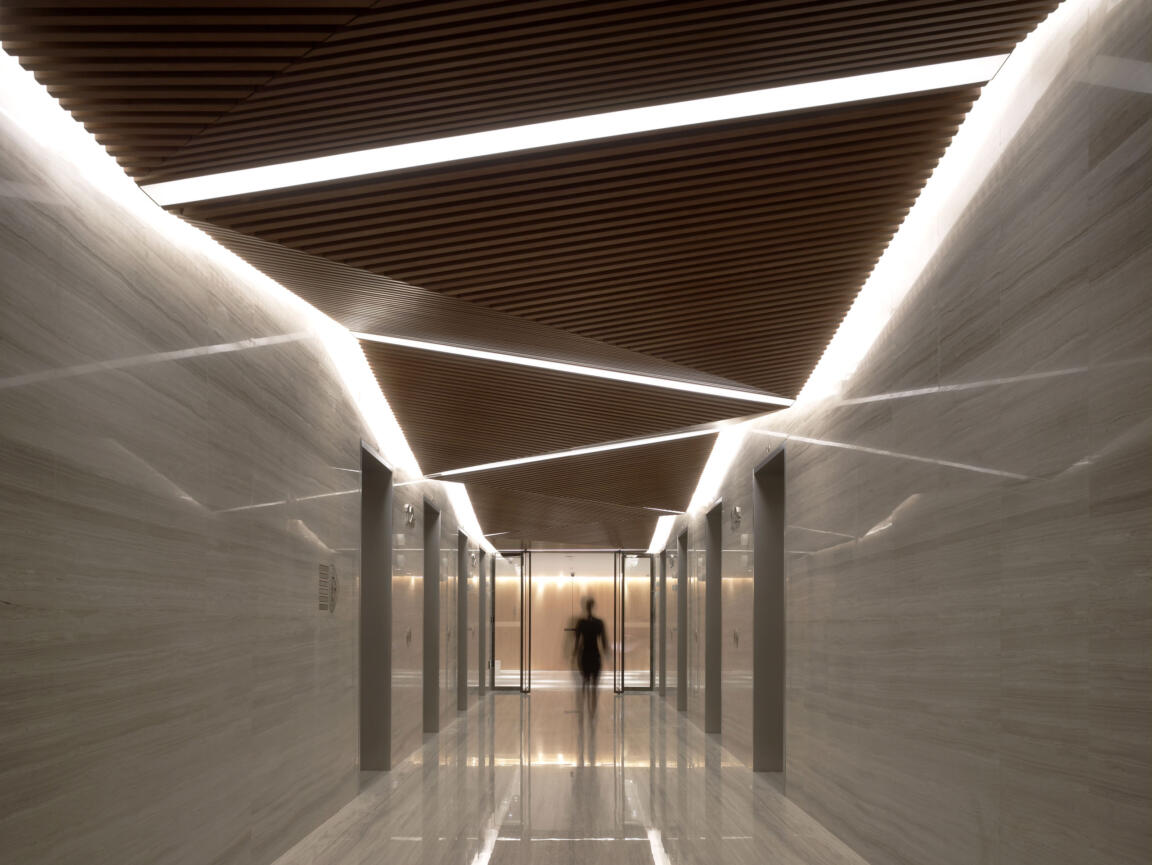 The design composition integrates the volumes of the primary functions creating a legible integrated whole. The five-story retail podium hosts a naturally lit enclosure and glass ‘Crystal Lotus’ as its defining centrepiece. Combined with the office lobby’s tessellated glass envelope it underlines the project’s ambition and CLOU’s commitment to excellence in design and construction.