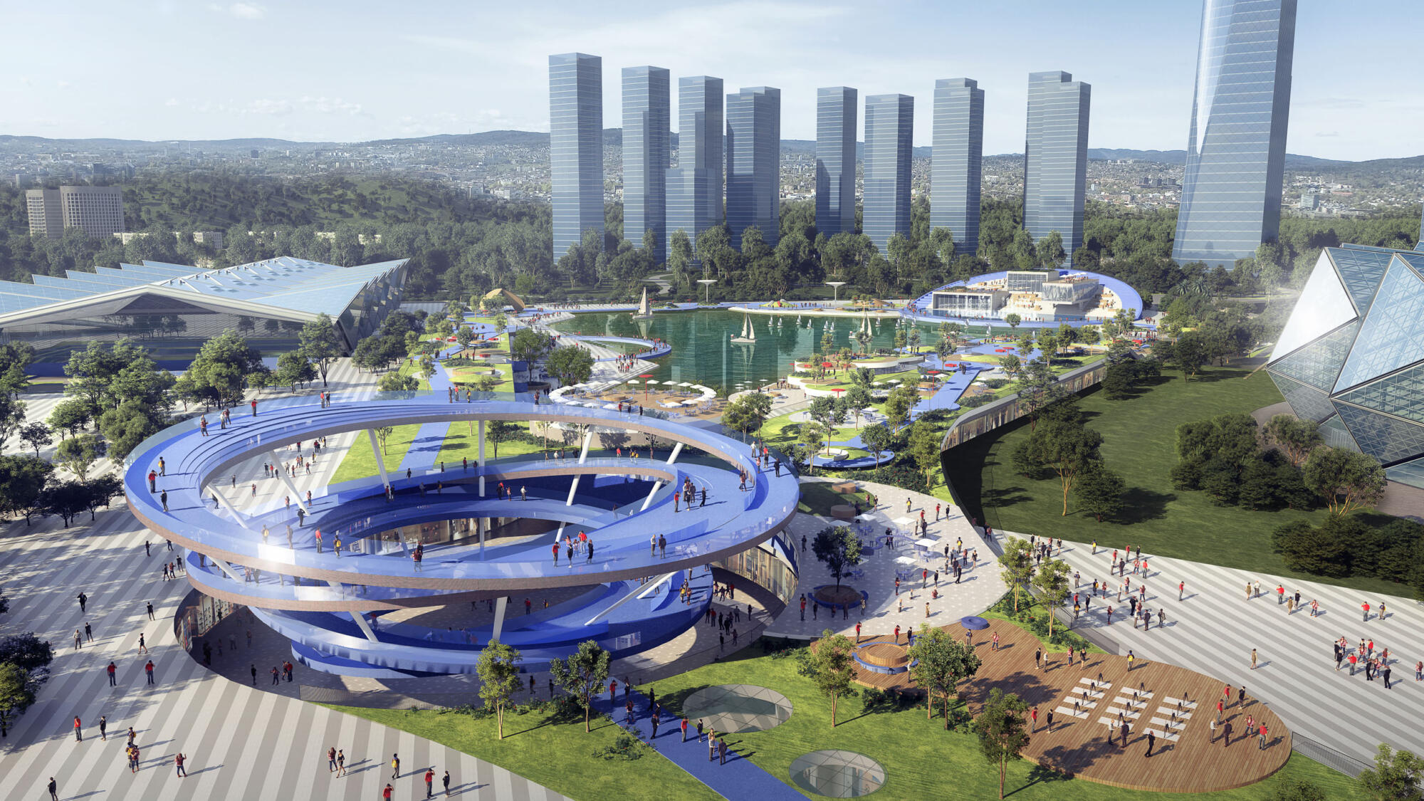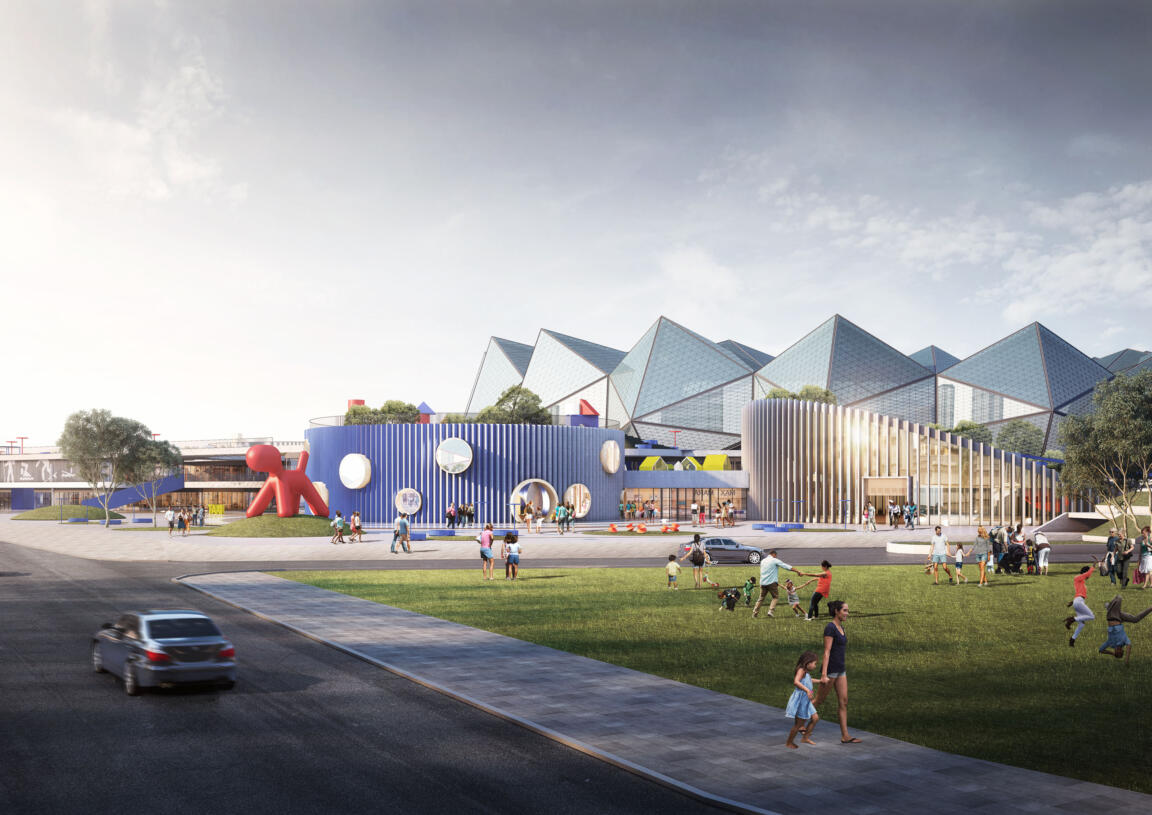 Connective sports, leisure, retail, and culture zones transform a disparate stadium landscape into an integrative indoor-outdoor experience.