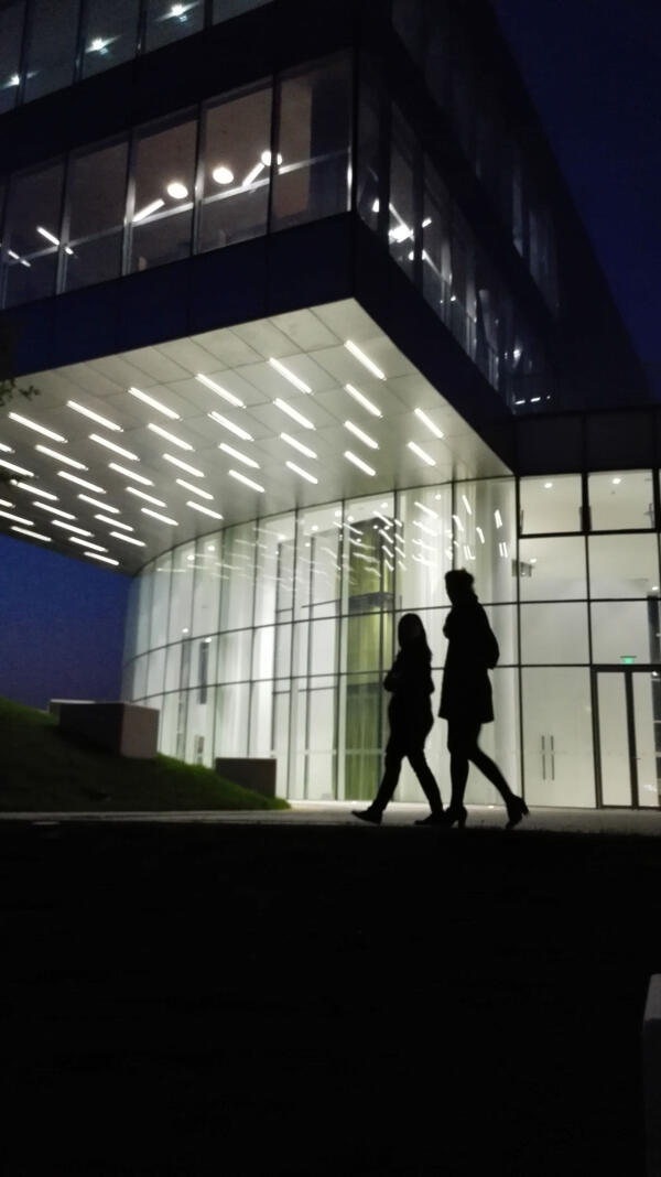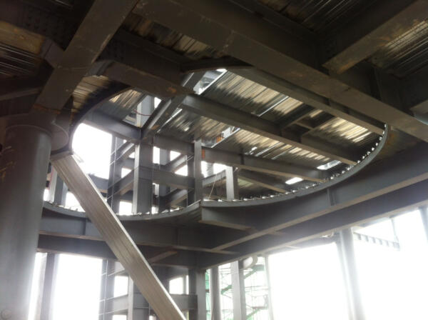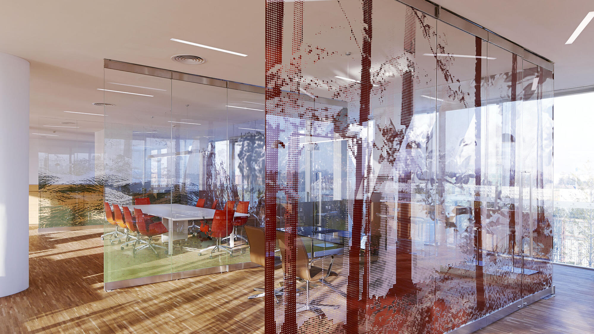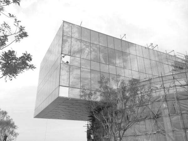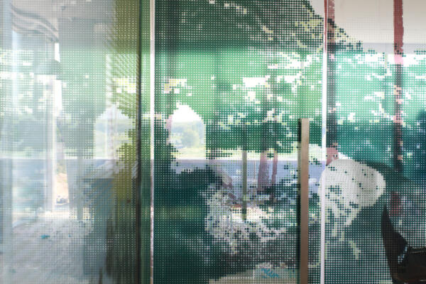 The sales gallery can be conceived as a playfully arranged showcase pavilion topped by a pragmatically organized office box. The combination of these two volumes, together with the large-scale cantilevers creates a spatial complexity of the interior and exterior.