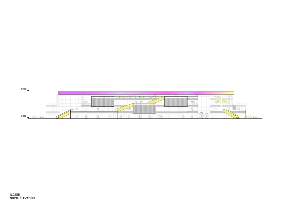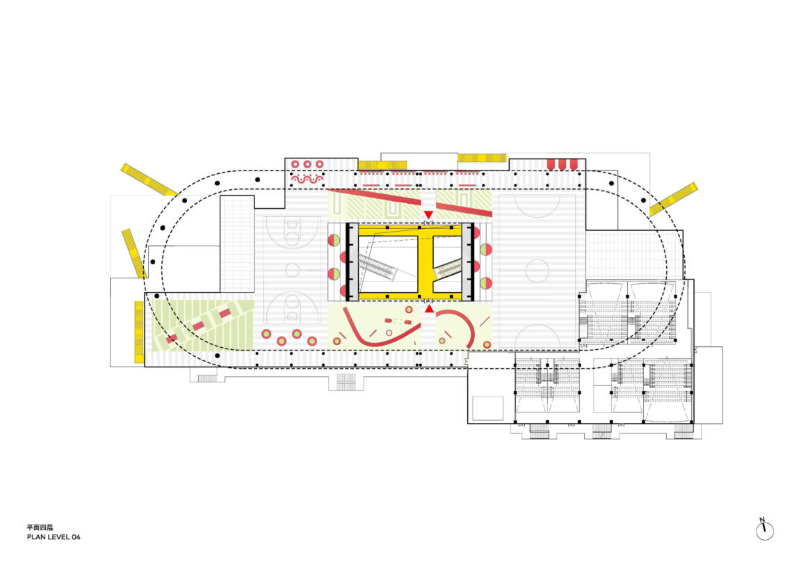Outdoor staircases take the circulation directly to the top floor and then guide it down gradually. Together with gyms, movie theaters, and kid education centers located at both ends of the building, form an all-around streamline that penetrates from “exterior to interior” and from “top to bottom”.