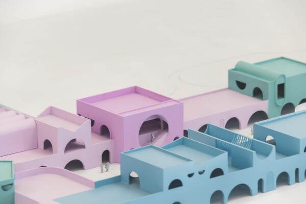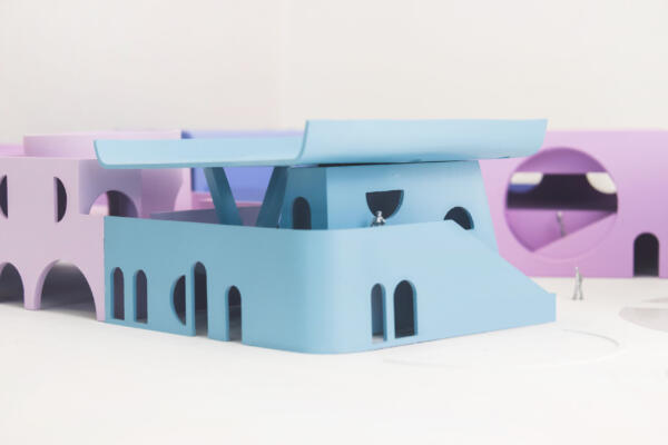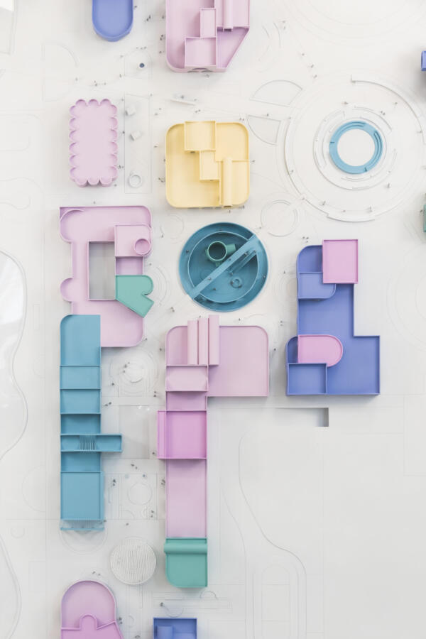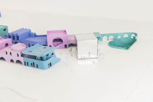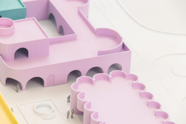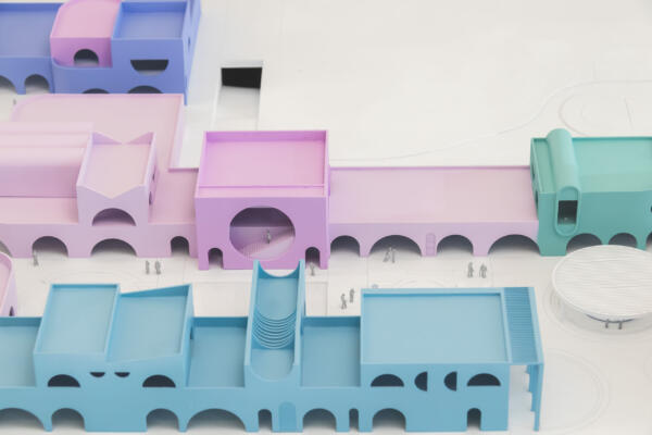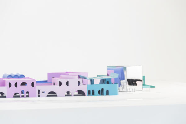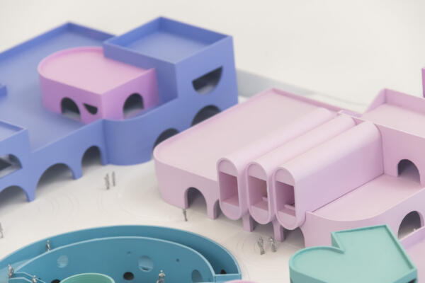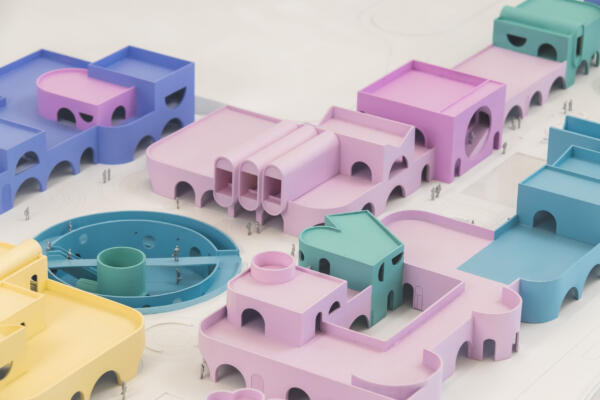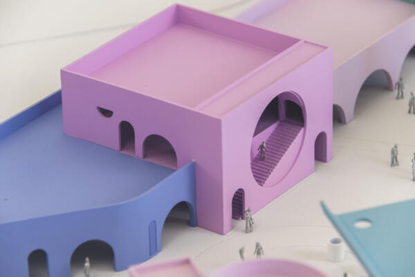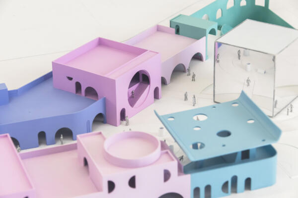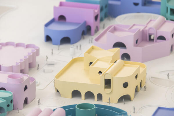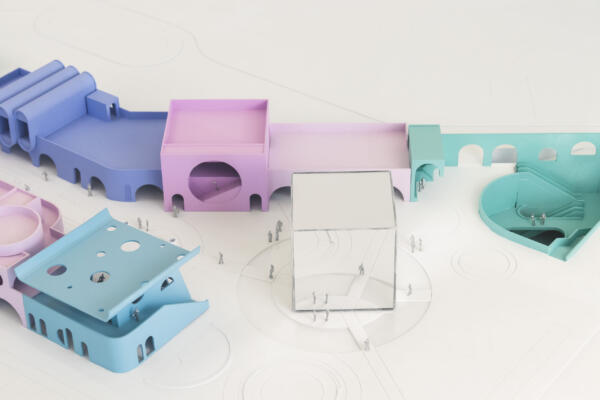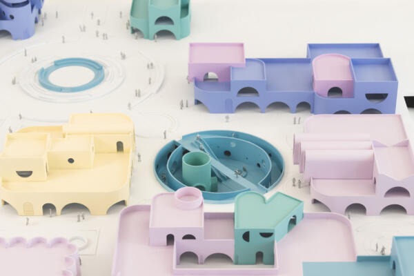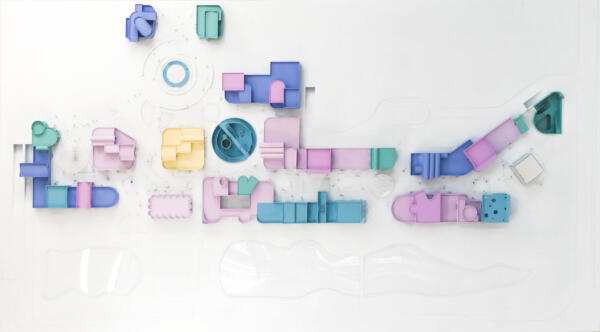Tailored to families with children, the Lego-like accumulation of colourful geometric volumes and playful architectural objects serves as a joyful prelude, inspiring perception, and integrating into a part of the overall Lego adventure.