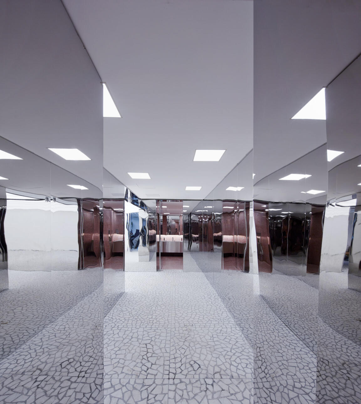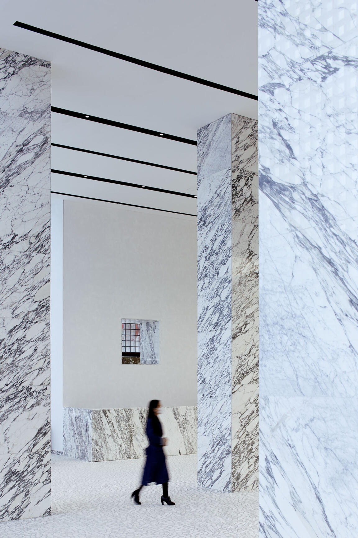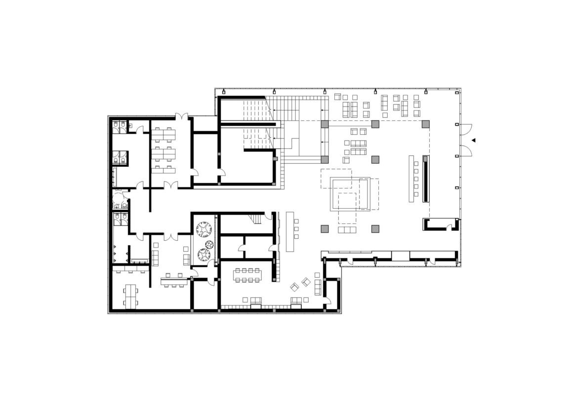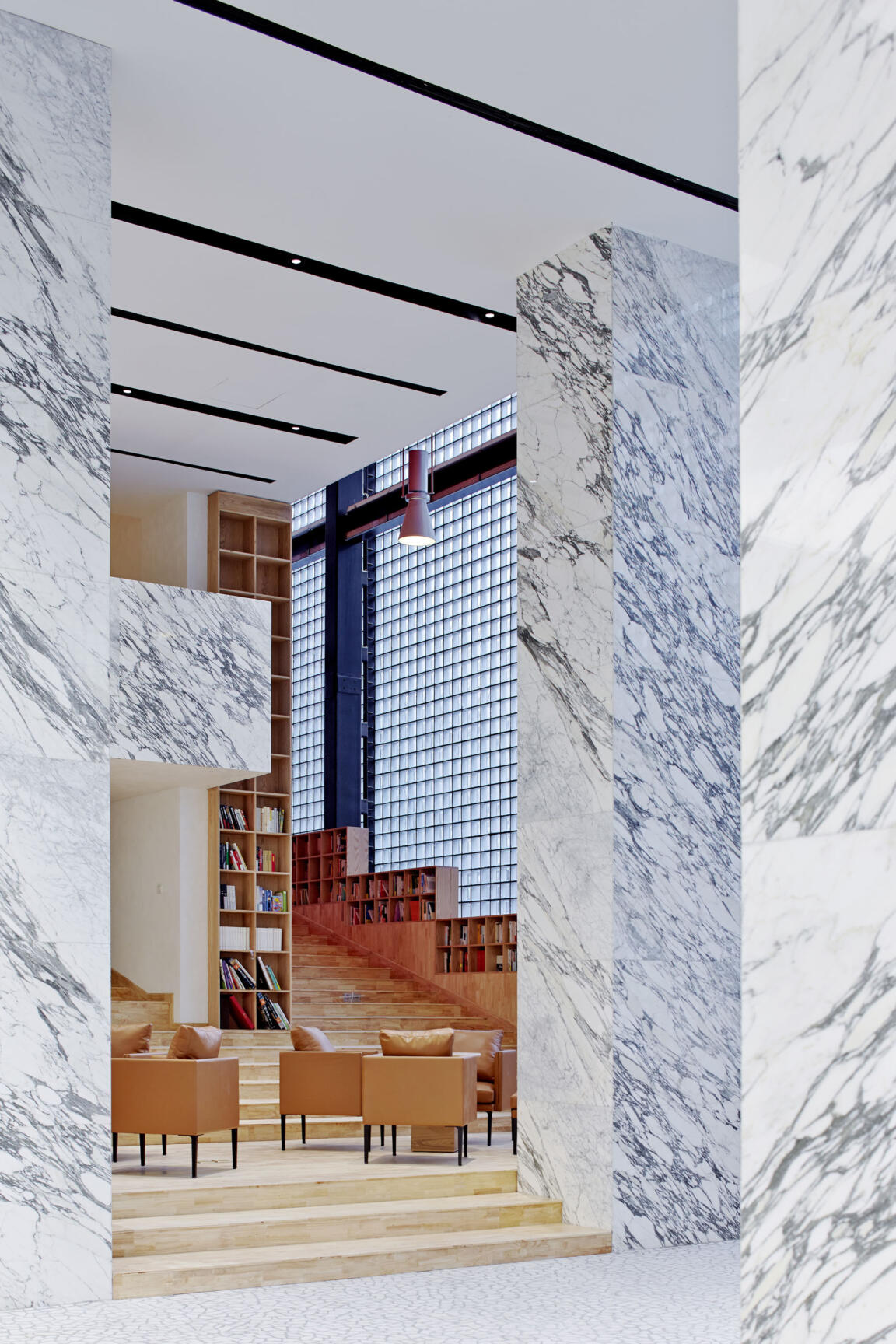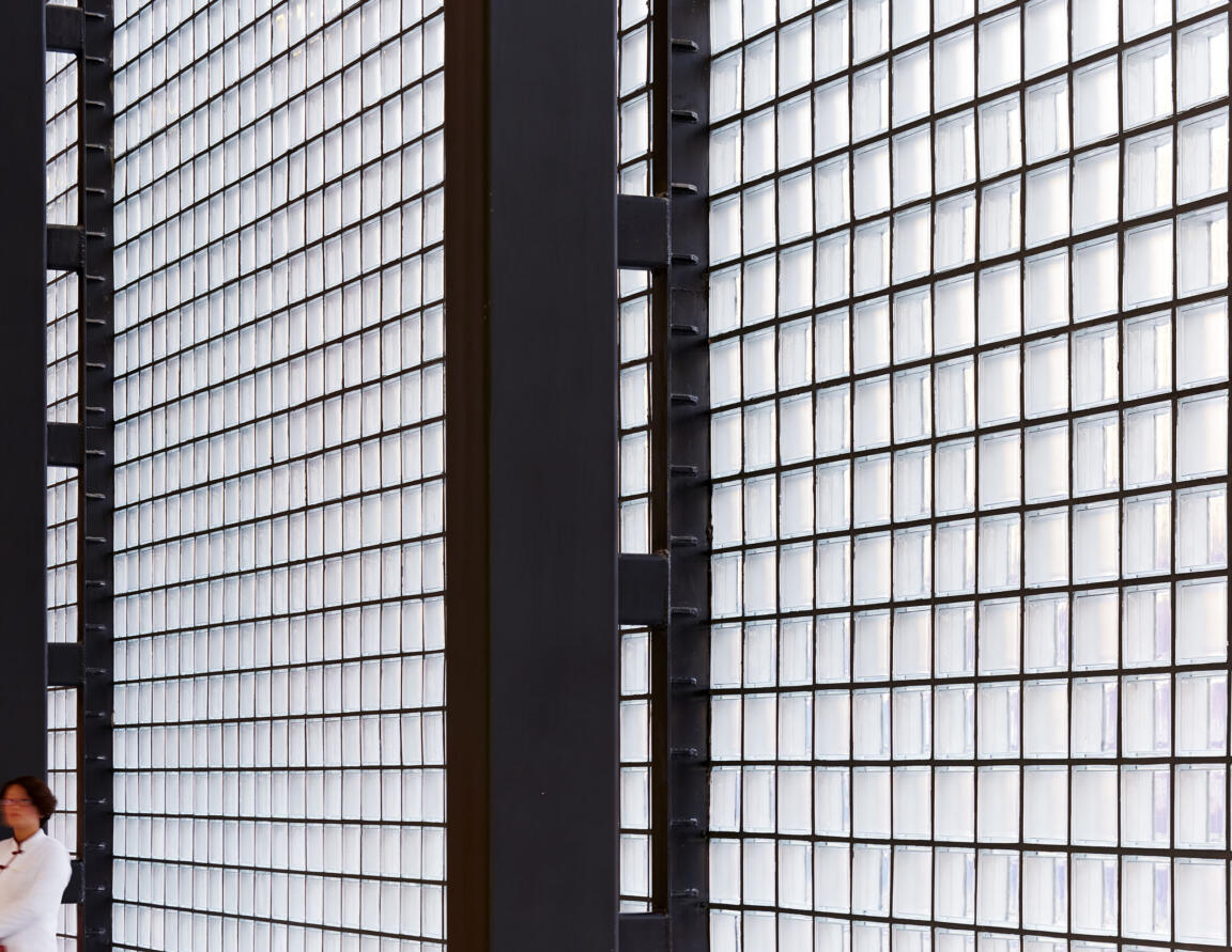 Previously dark and cavernous, CLOU opens up the structure of the boiler room using a combination of transparent and translucent glass brick in order for the building to harbour light around the main hall.