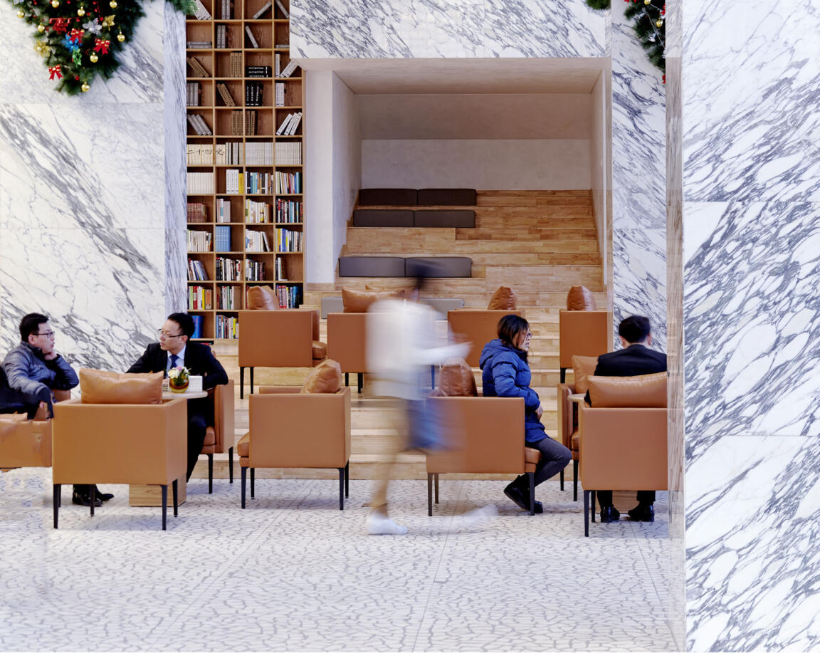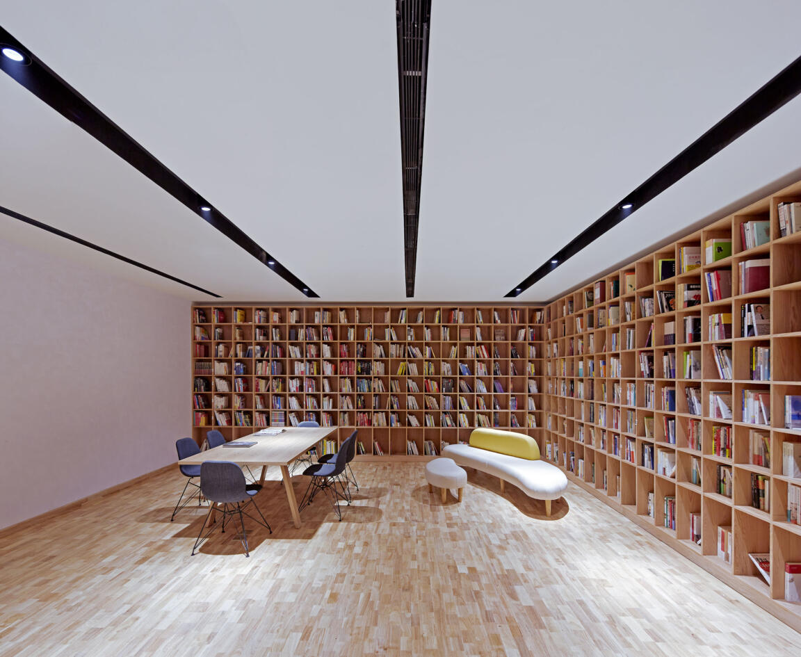 An industrial boiler room in the city of Taiyuan has been transformed into an airy gallery by CLOU. The boiler room had originally been built in 1982 in the city of Taiyuan. In 2016, the building was stripped to its original structure, reinforced, and converted into a showroom. Apart from serving as a sales gallery, the 2000 sqm showroom operates as a public building including a library, reading room, conference centre and a café.