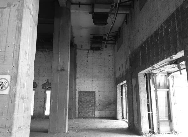 Previously dark and cavernous, CLOU opens up the structure of the boiler room using a combination of transparent and translucent glass brick in order for the building to harbour light around the main hall.