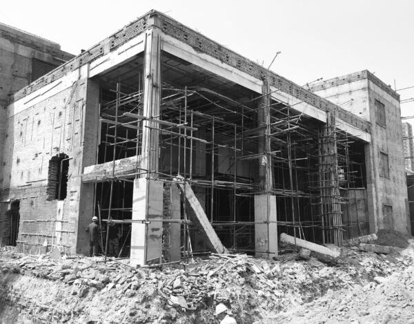 An industrial boiler room in the city of Taiyuan has been transformed into an airy gallery by CLOU. The boiler room had originally been built in 1982 in the city of Taiyuan. In 2016, the building was stripped to its original structure, reinforced, and converted into a showroom. Apart from serving as a sales gallery, the 2000 sqm showroom operates as a public building including a library, reading room, conference centre and a café.