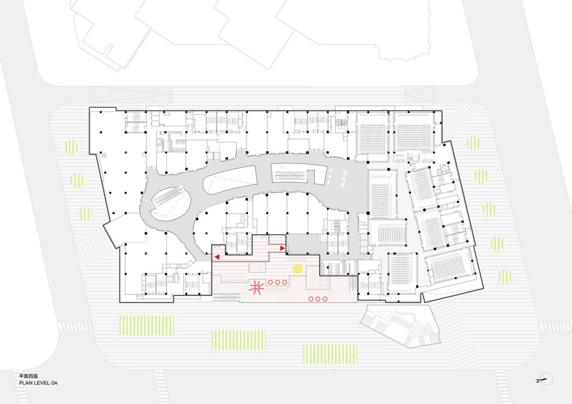 In its predominantly community retail function, the shopping centre serves as a civic node for the newly-developed vertical neighbourhood in need of collective facilities and public spaces.