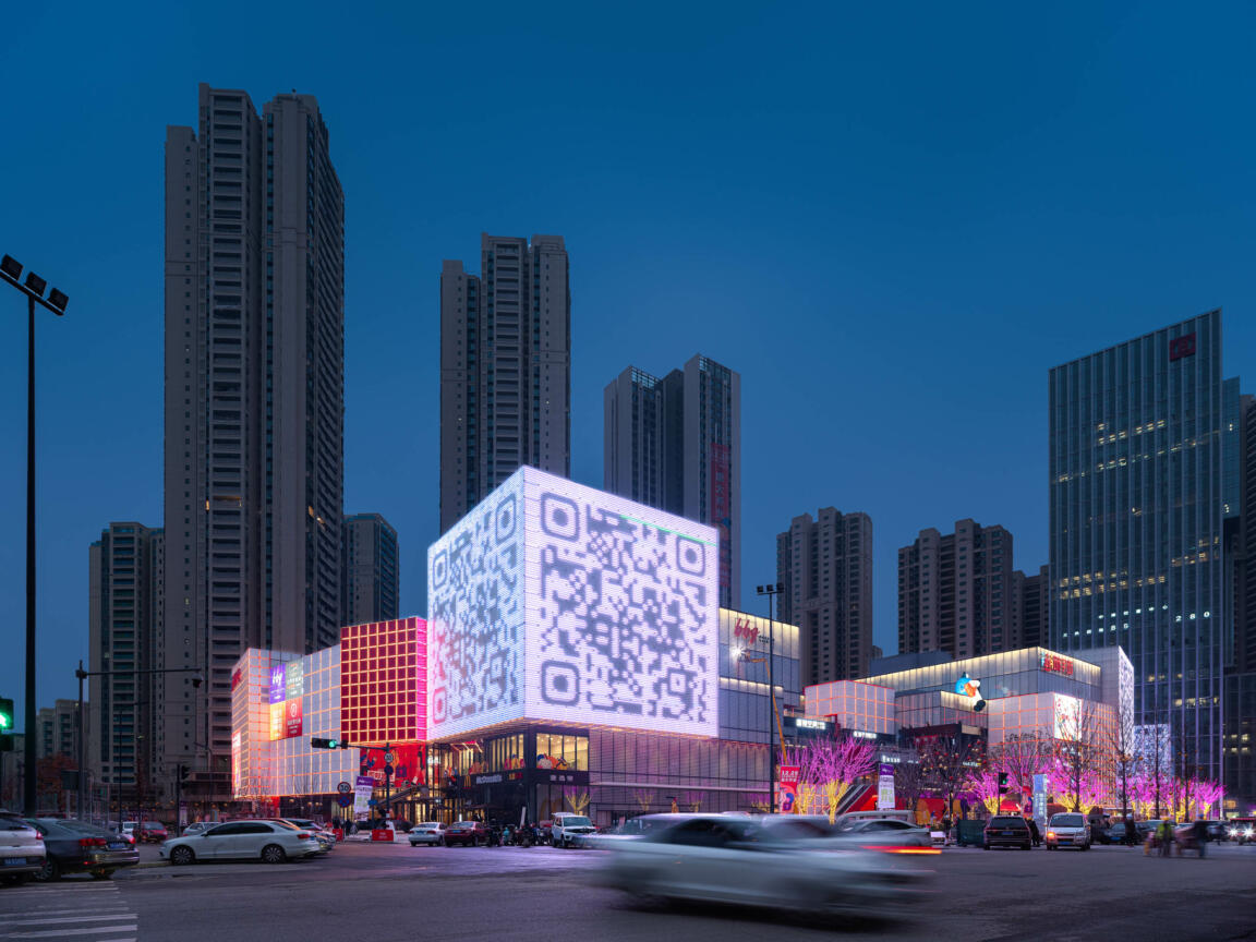 Integrating abstract architectural form and digital promotion along a large-scale outdoor civic space, the interactive facade systems of UniFun Tianfu Chengdu merge physical and virtual worlds for their multigenerational audience.