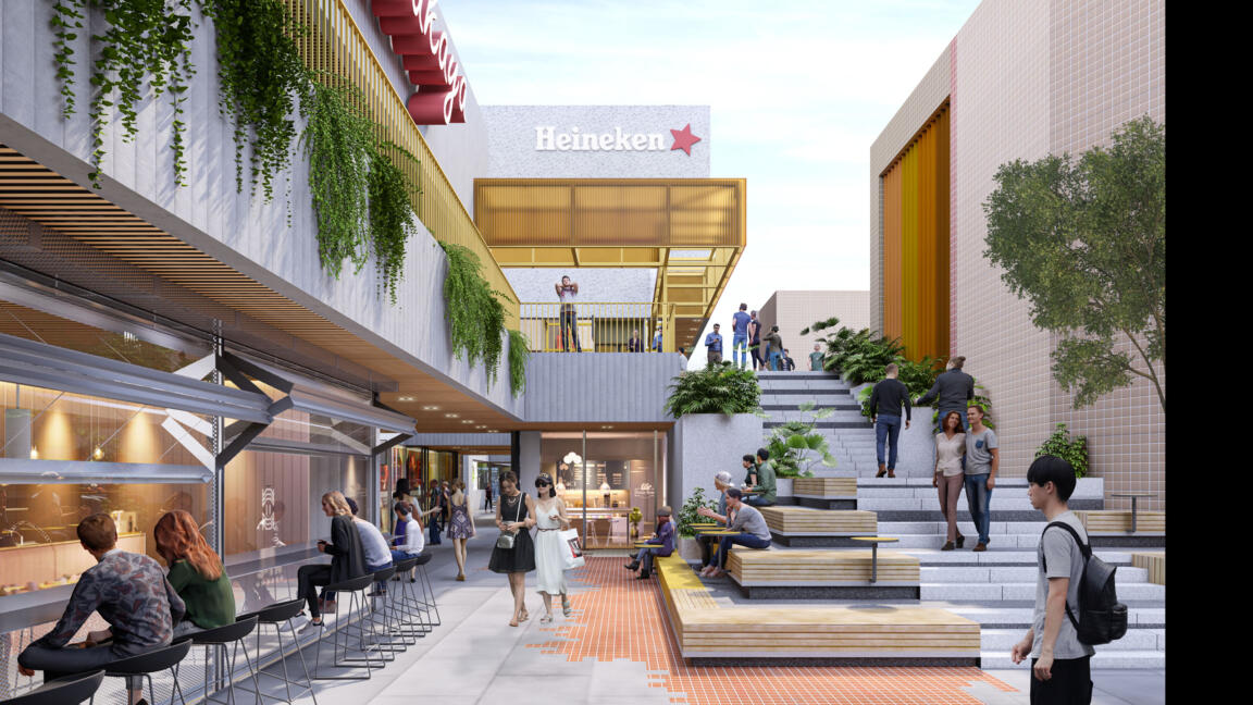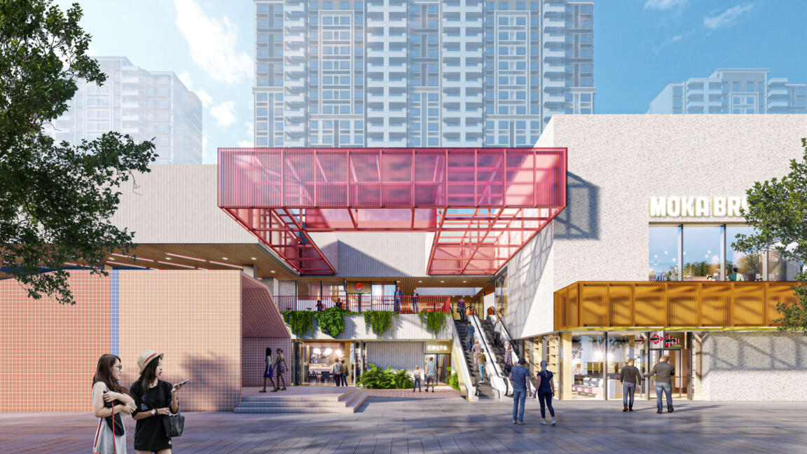 Further into the site, the social Neon Yard centres around young F&B outlets and pop-ups that connect indoor and outdoor settings for a lively backdrop into the late hours. The Home Yard is a family-oriented fun and leisure space with a food court focus. Bridging into the main mall nearer the residential developments, the Single Garden is a social neighbourhood space with upper-level quiet courtyards and vertical planting above a supermarket and parking.
