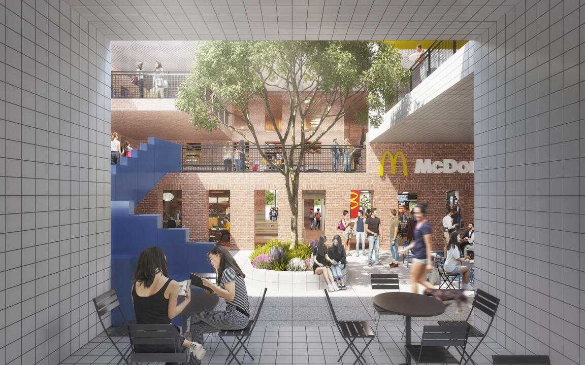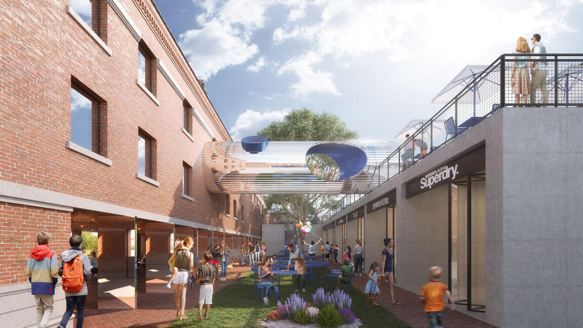 With industrial transformation and subsequent community renewal, the area is subject to a comprehensive re-development whose cultural and commercial heart manages to preserve and convey the pivotal idea of community values.